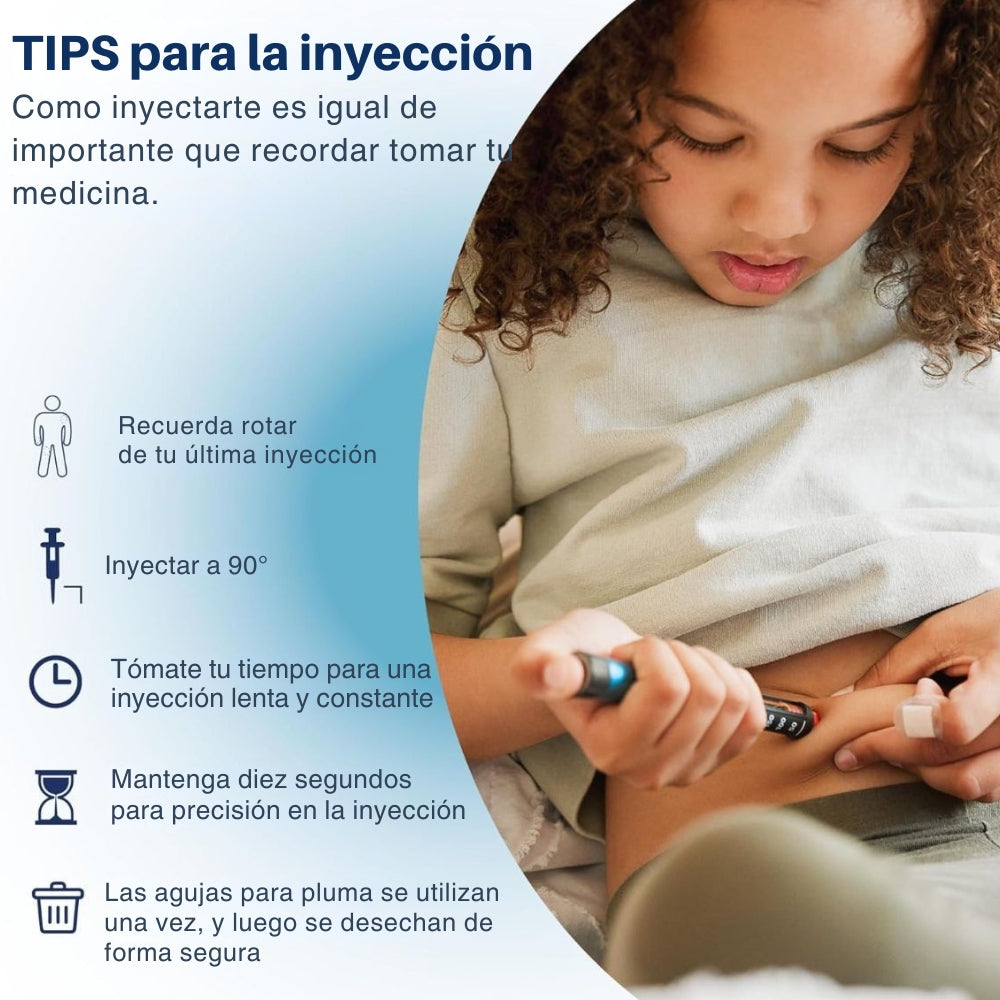 Inteligente:La pared fina con mayor diámetro interior suministra un flujo de insulina rápido y adecuado.